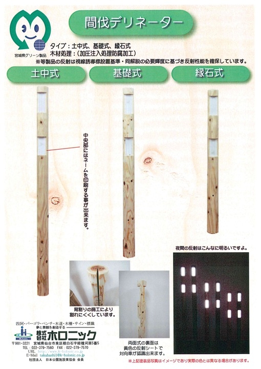 宮城県の間伐材を利用したデリネーターです。