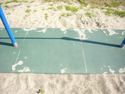 安全面も考慮して鉄棒の落下部分には衝撃吸収の為のゴムマットを設置しました。