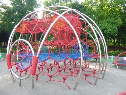 国営みちのく杜の湖畔公園内にあるネット遊具を修繕しました。