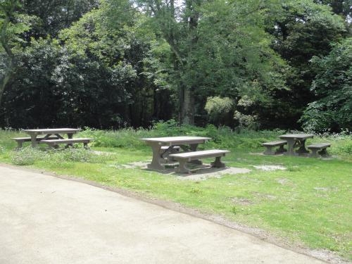 2基は通常のテーブルベンチですが、1基はノーマライゼーションを考慮した車いす対応のテーブルベンチになっています。