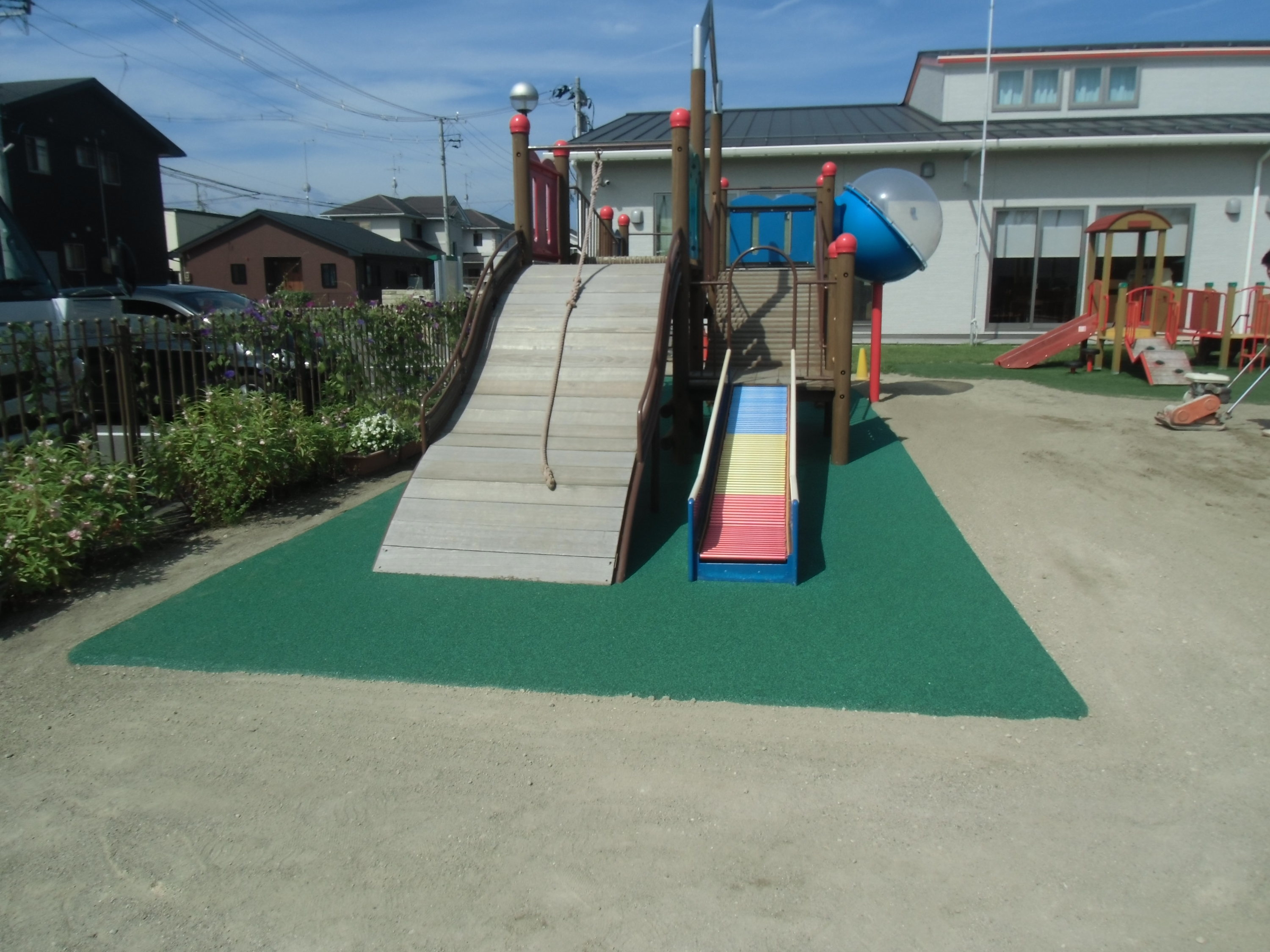子供たちが遊びに夢中で、万が一落下した場合、遊具の下が、固い土だったら、頭部損傷の恐れがあります。
