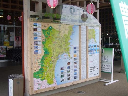 宮城県内の観光案内板です。上品の郷という宮城県内の道の駅に設置しました。施設全体は県内の杉材によって製作されている為、案内板本体も杉材を使用しました。本体は加圧注入の防腐加工をしており長期の耐久性を確保しています。上部の透明部分は強化ガラスを使用しています。