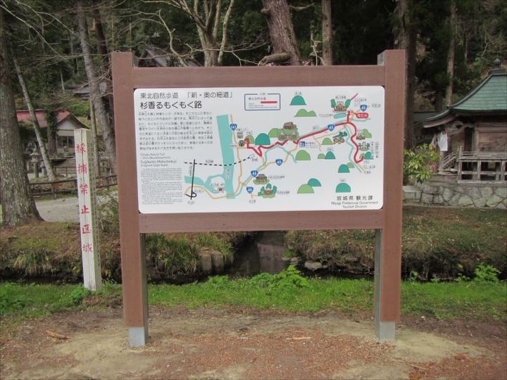 東北自然歩道「新・奥の細道」のうち登米市津山地区にある「杉香るもくもく路」にある観光案内版のリニューアルを担当させていただきました。