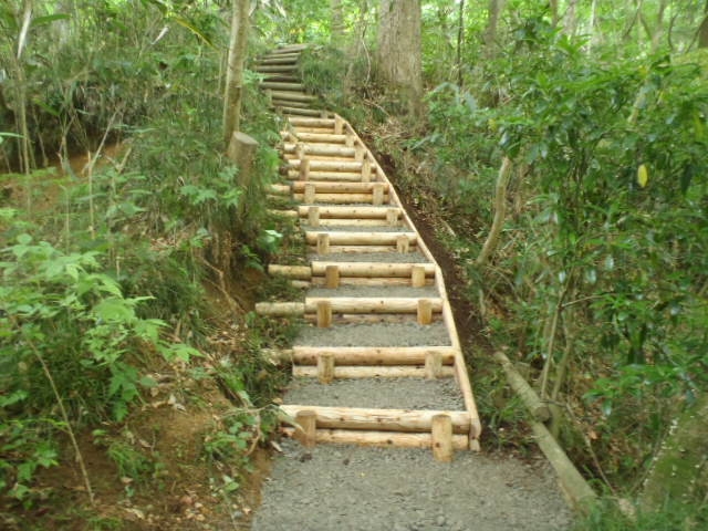 間伐材を使用した遊歩道の階段です。