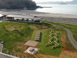 夏場の海水浴でにぎわう白浜ビーチパークに木製遊具が設置されました。